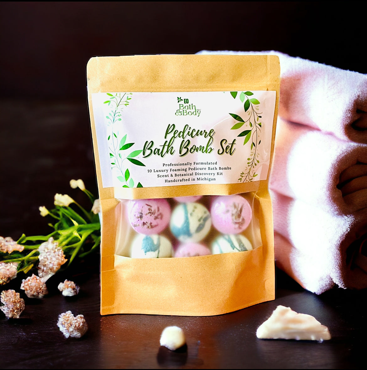 - EACH PEDI BOMB IS HANDMADE RIGHT HERE IN MICHIGAN WITH OUR VERY SPECIAL ALLERGEN FRIENDLY RECIPE THAT CREATES LONG LASTING, AMAZING PEDI BOMBS LOVED BY MANY!!!