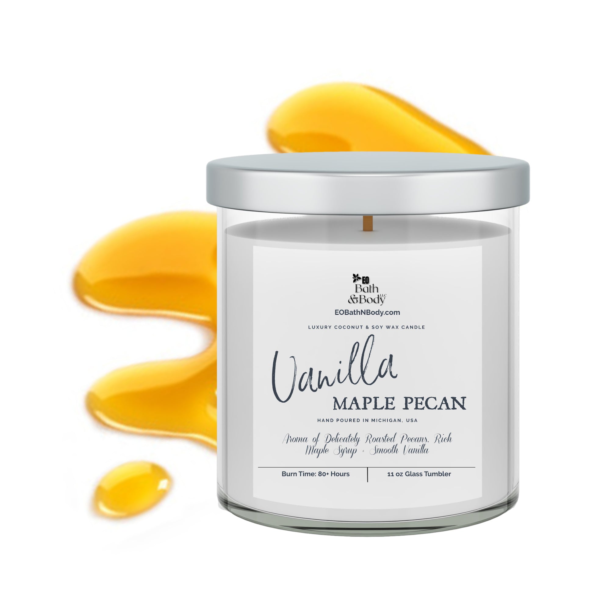 Vanilla Maple Pecan Luxury Coconut + Soy Wax Wood Wick Candle | 11 oz Glass Tumbler & New Eco Cover