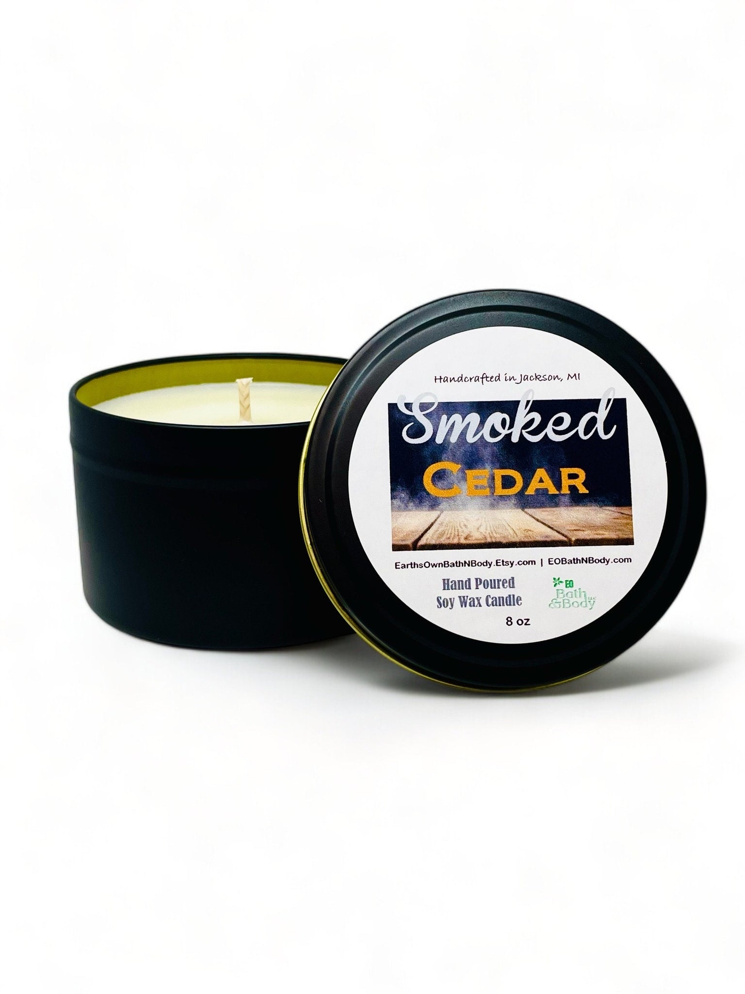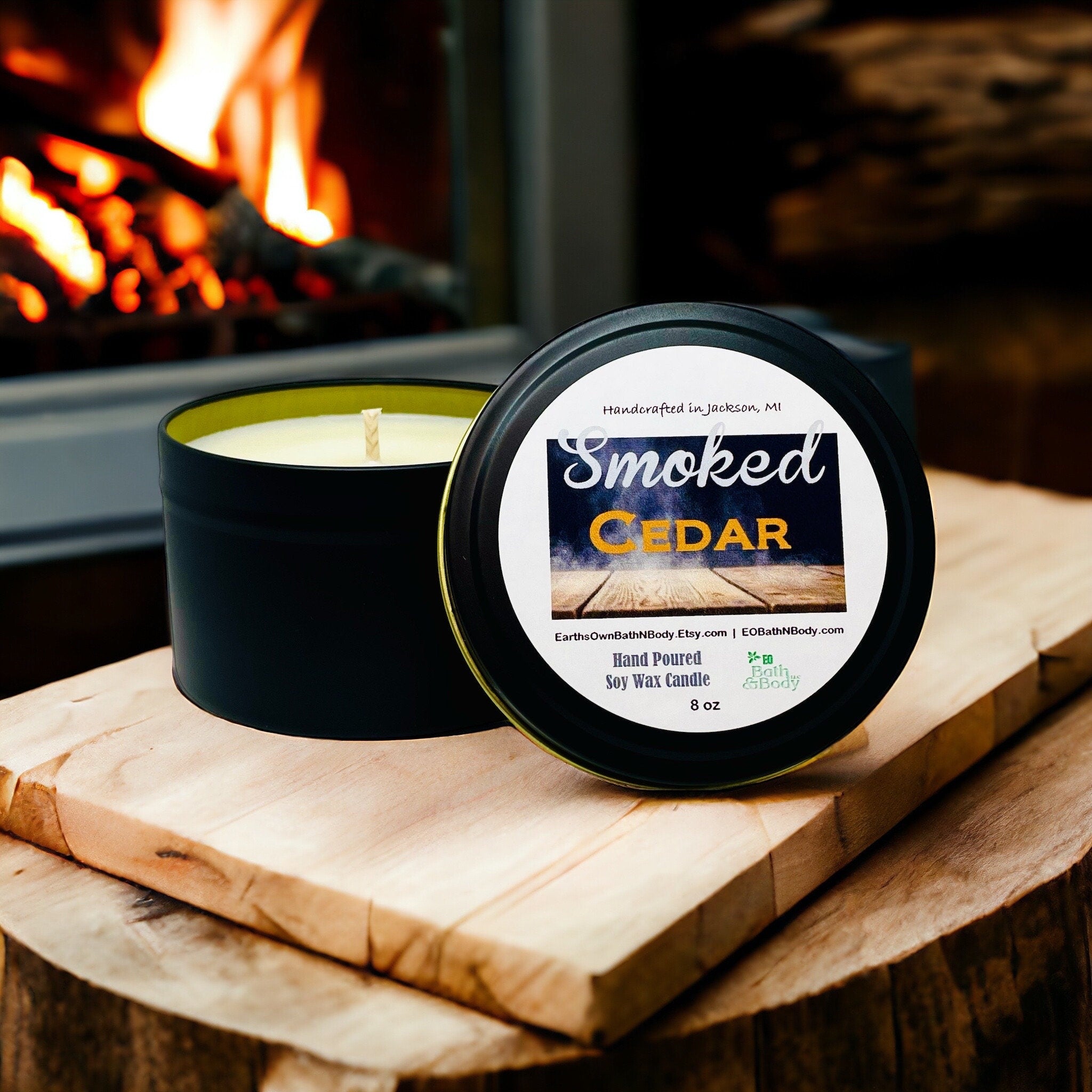 Smoked Cedar Soy Wax Candle | Nostalgic | Gift Box | Forest Woods Candle | Hand Poured | 8 oz Tin